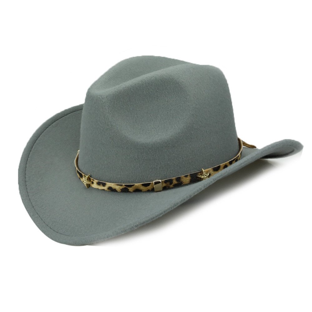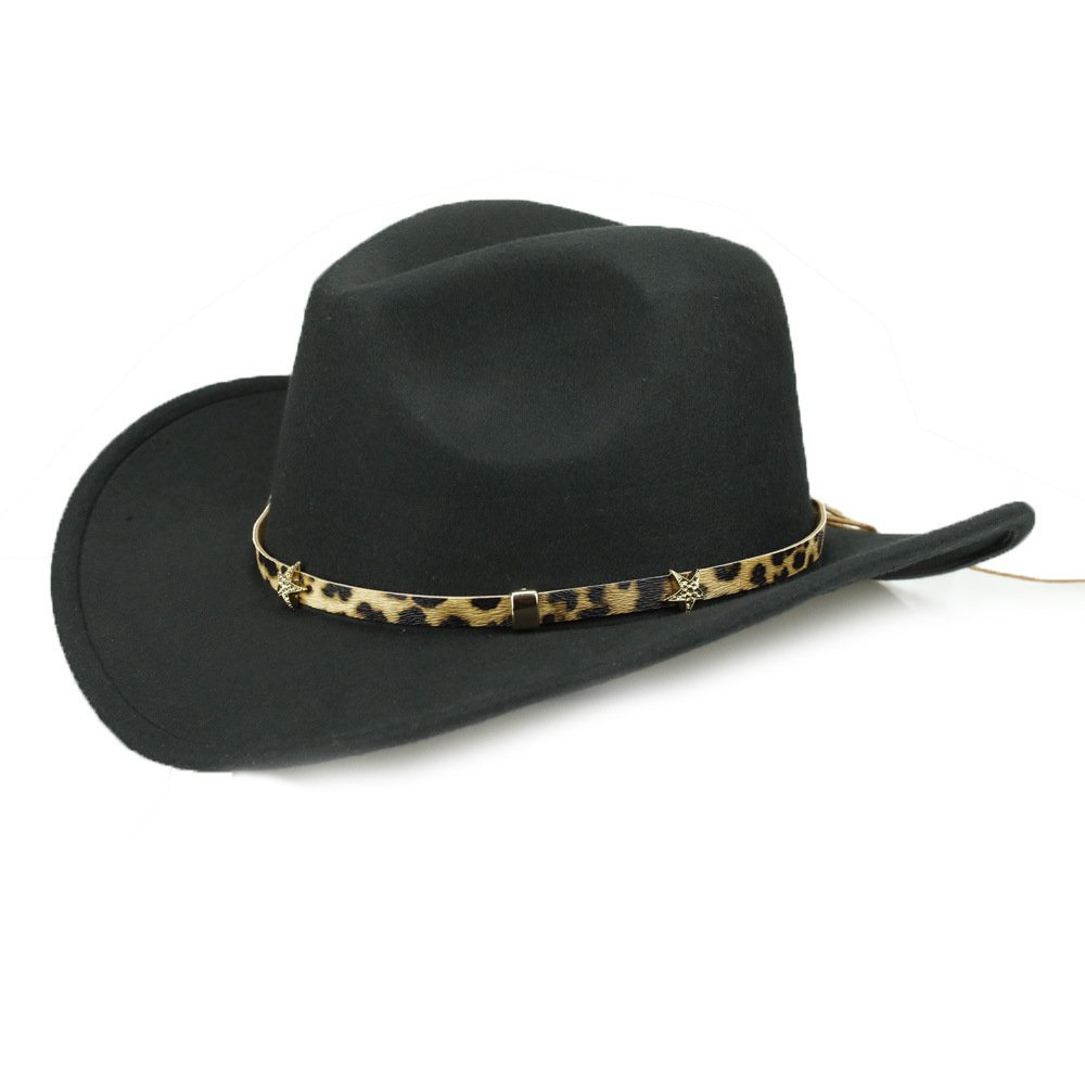 Leopard Print Five-pointed Star Belt Cowboy Hat Men’s And Women’s Autumn And Winter Woolen Fedora Hat Outdoor Knight Hat Western Cowboy Hat