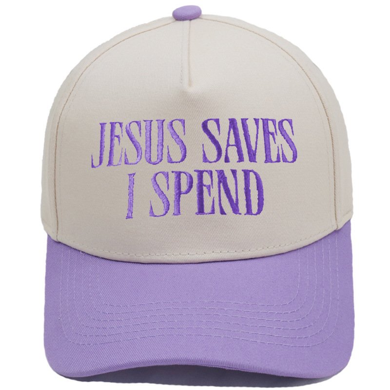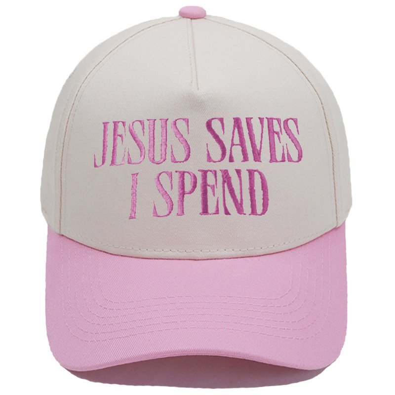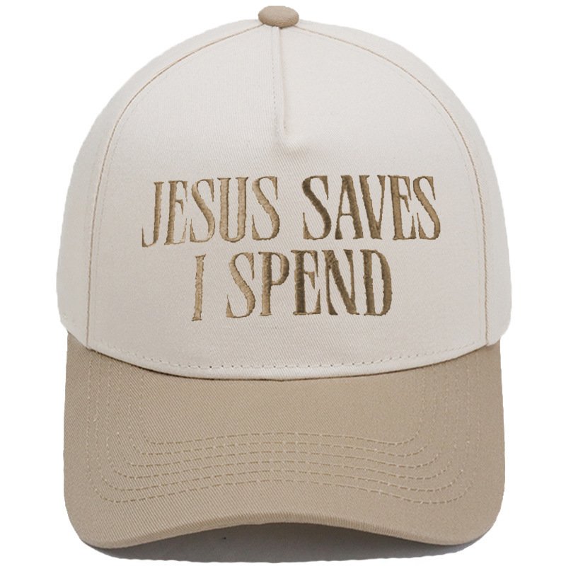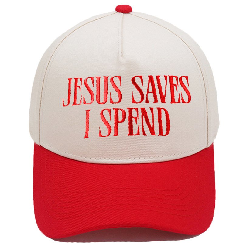 Trucker Hat – JESUS SAVES I SPEND Embroidered Color-Block Cap