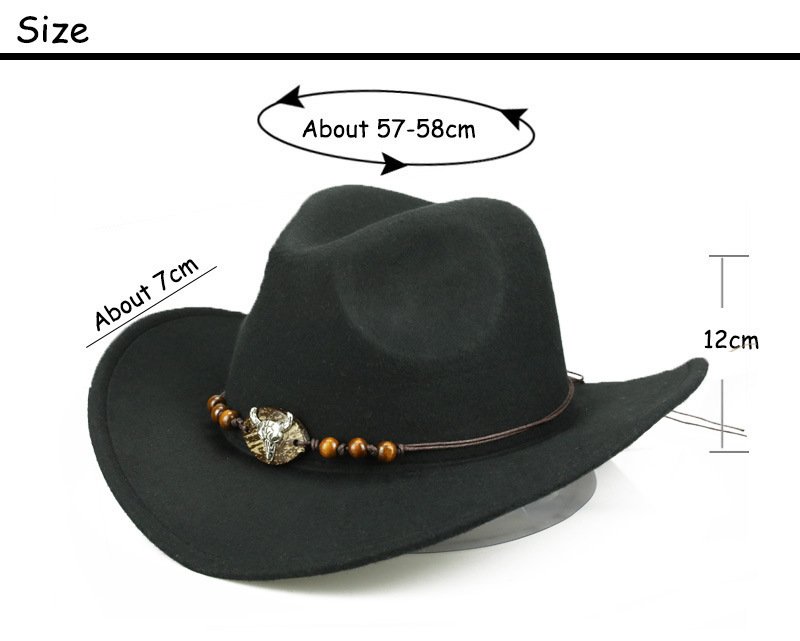 Western Cowboy Hat Wooden Bead Bull Head Fedora Hat
